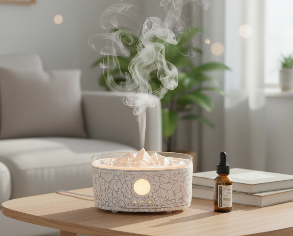 Stylish design Ultra-quiet volcano mist • Aromatherapy • Soft LED glow • Remote control